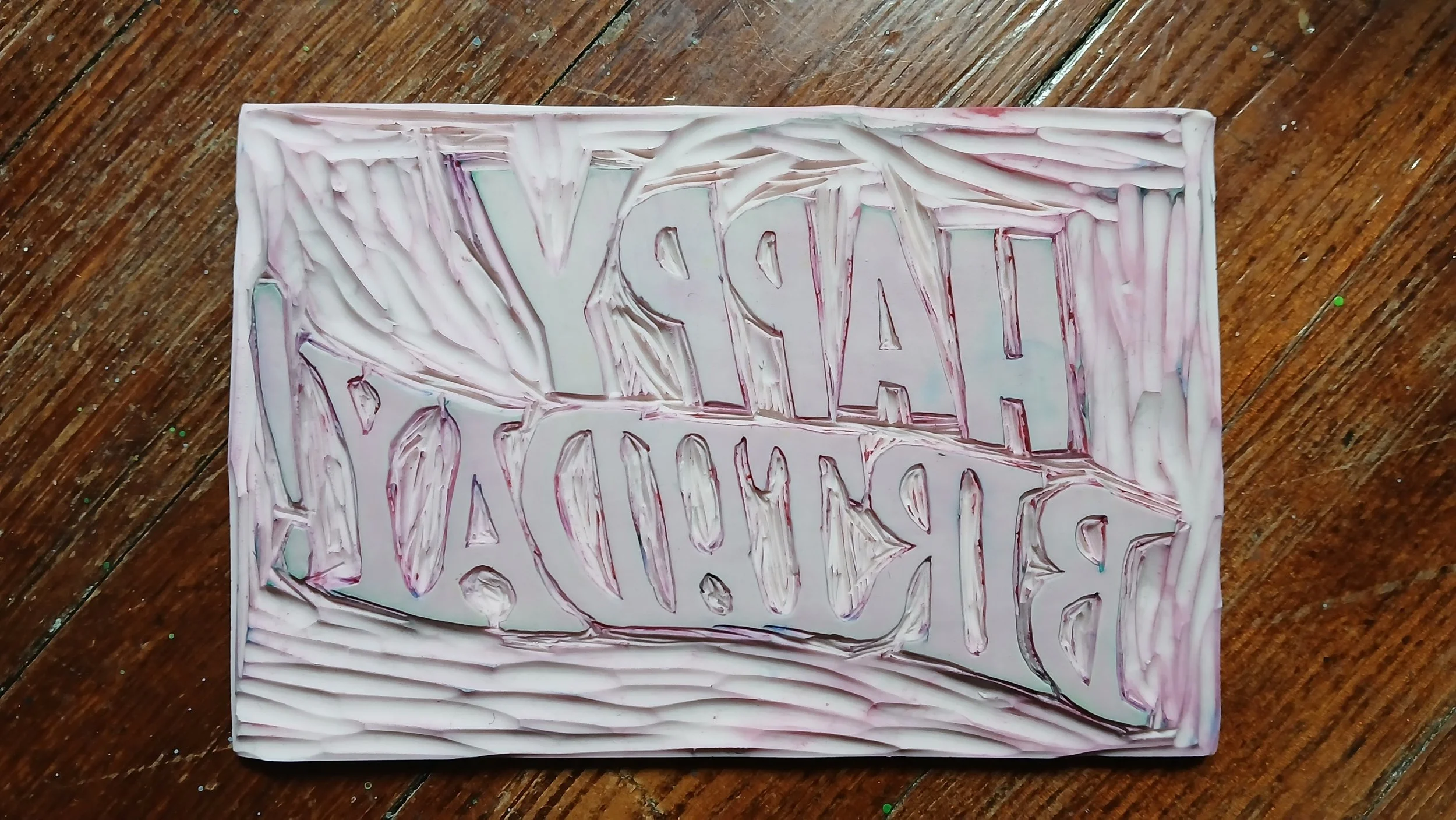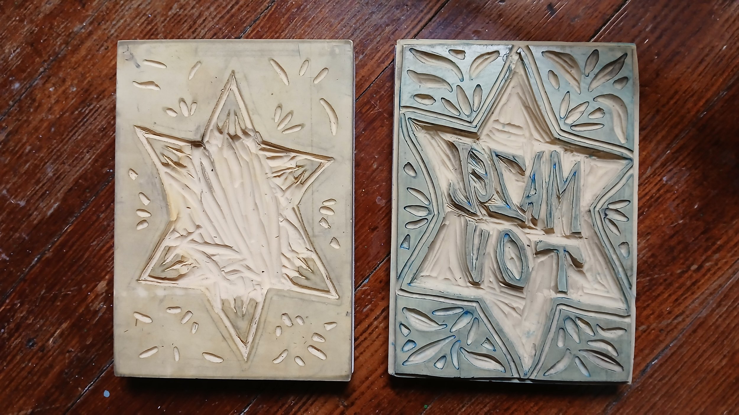 Like the Happy Birthday block, I worked out how the two layers would fit together on tracing paper first before carving them.